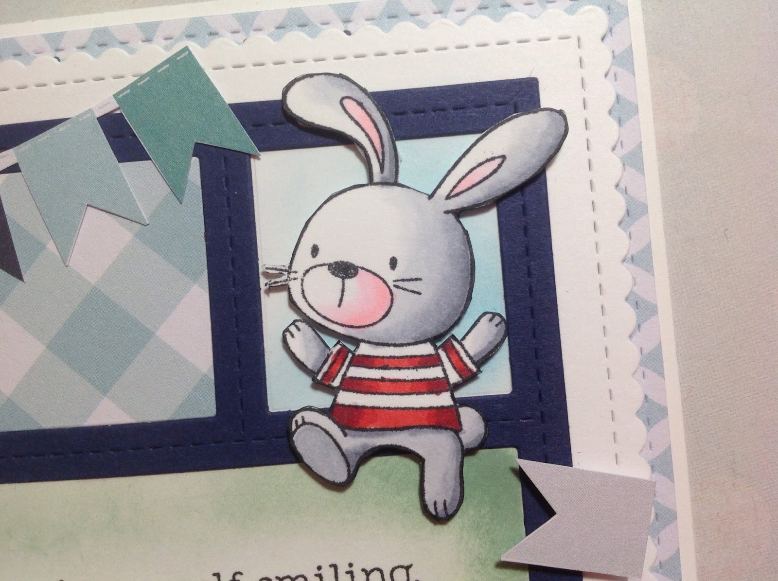 Coucou tout le monde !! J’ai craqué pour cette adorable planche de tampons chez ma copine Noëlle de la boutique Toutencolle !! Oui, je sais, c’est quasi maladif, lol !!!! J’ai choisi de réaliser une carte pour un petit garçon et comme nous sommes en été (enfinnnnnnnn !!!!!), je suis restée dans cette inspiration marine suggérée par les vêtements du petit lapin.