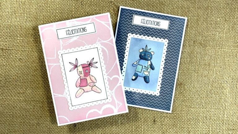 Deux cartes de naissance avec des tampons Chou & Flowers et des papiers Crazy Little Craft.