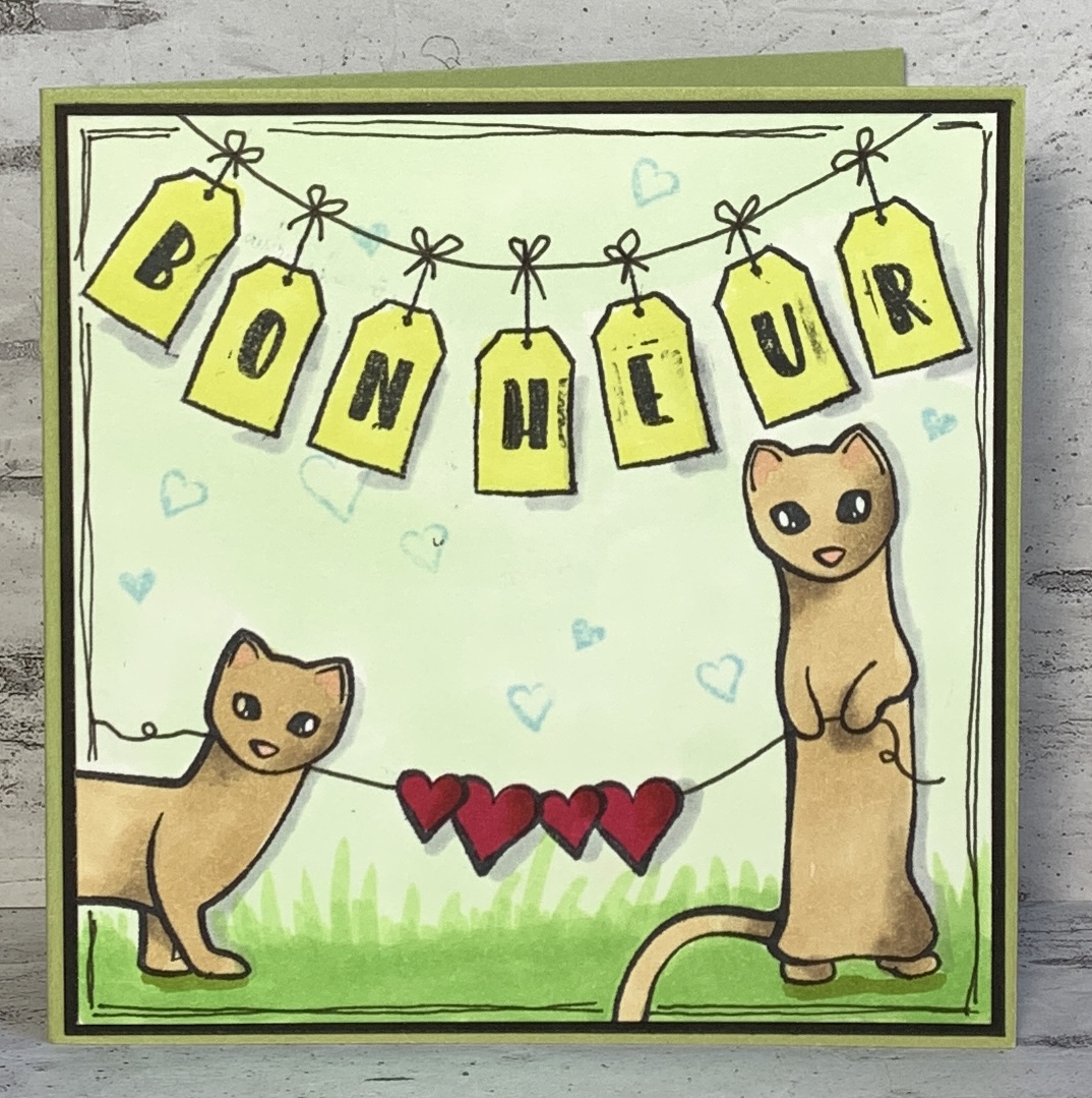 j’avais besoin d’une carte pour accompagner un cadeau et ces deux adorables petites fouines de la planche « Courrier surprise » ce sont portées volontaires.