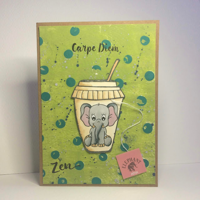 C’est donc tout naturellement que j’ai utilisé la planche de tampons « Gobelets » de Jennifer C. sur laquelle j’ai ajouté le petit éléphant de la planche « Éléphants ».