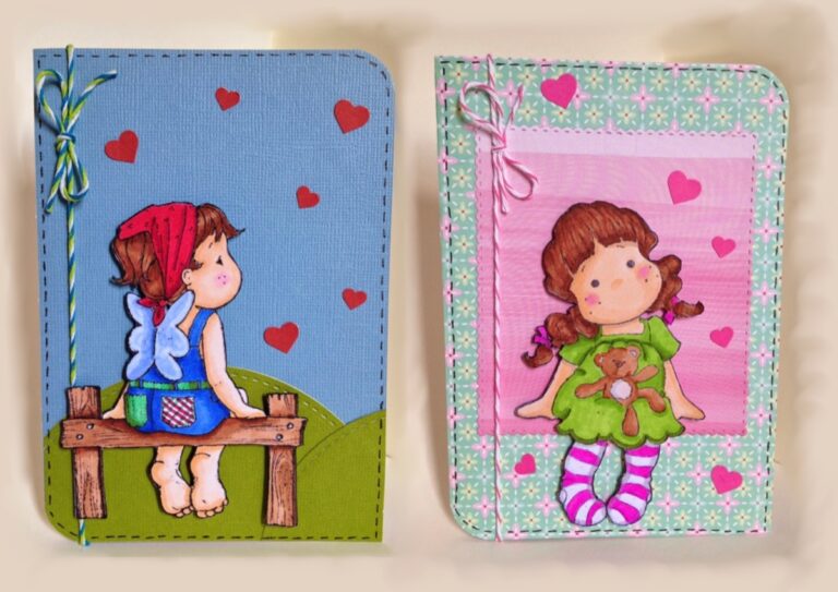 Quatre jolies cartes avec des tampons Penny Black mis en couleur aux feutres à alcool.