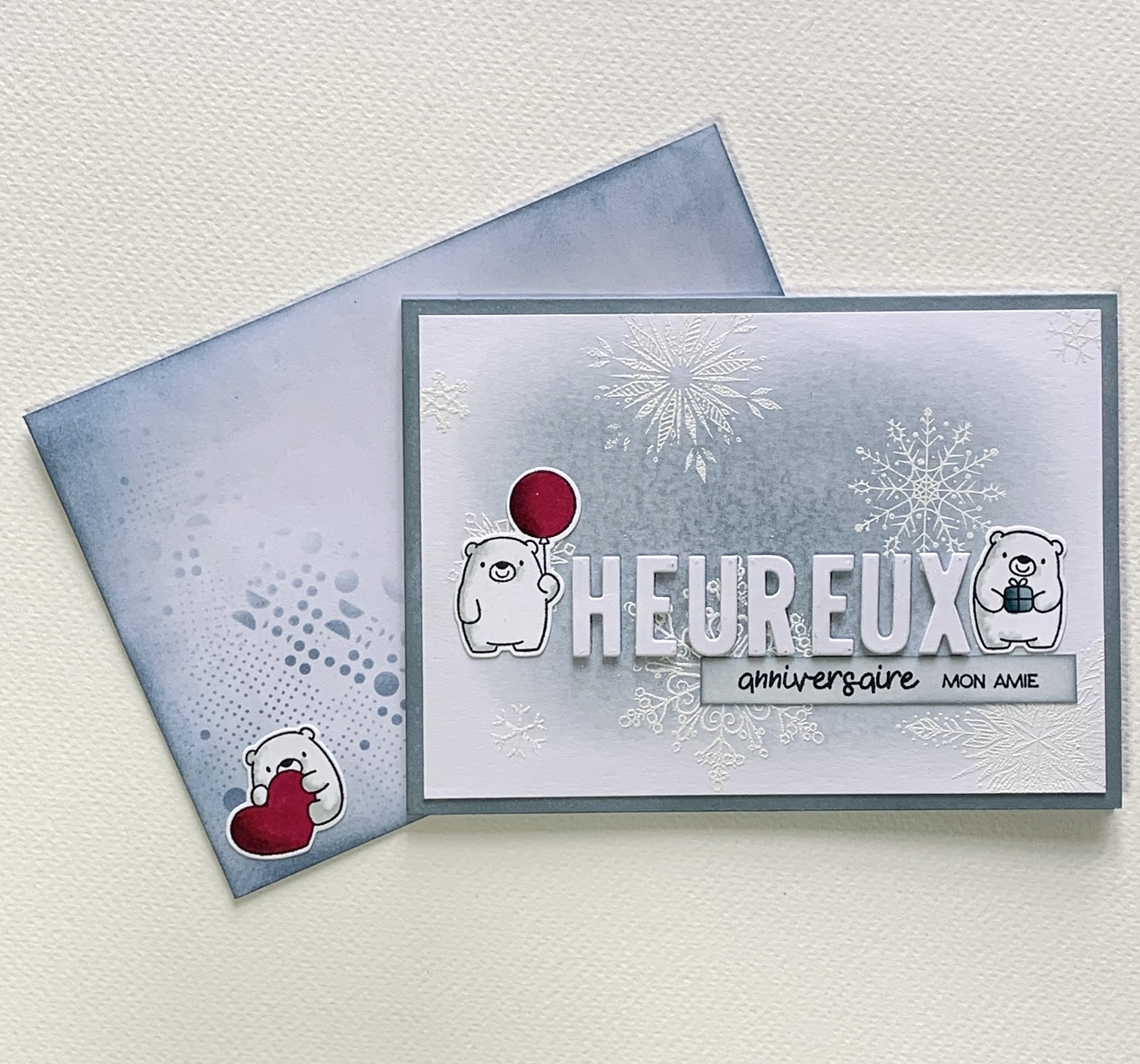 Nous débutons aujourd’hui avec une carte d’anniversaire ; la destinataire l’ayant reçue, je peux vous la montrer maintenant 😊