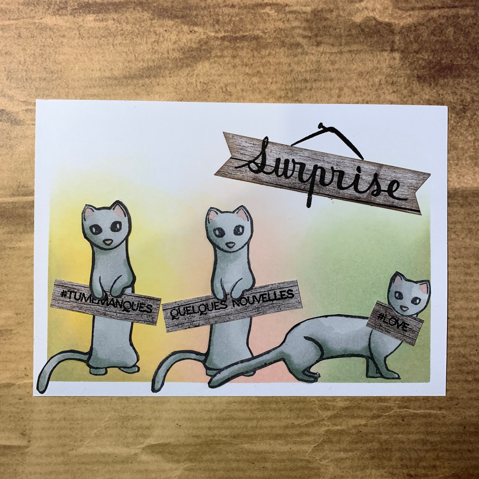 j’avais envie de refaire une petite carte avec ces adorables petites fouines de la planche « Courrier Surprise » !