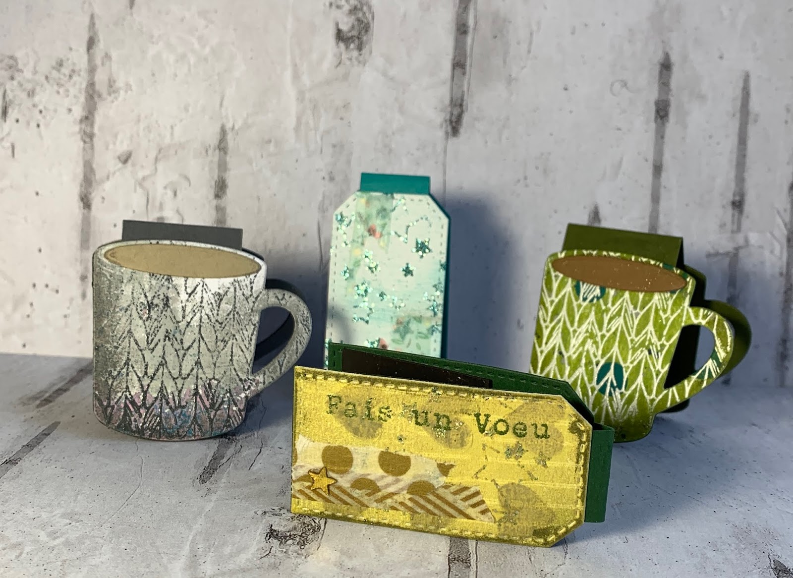 J’ai également utilisé des dies et plus précisément l’ensemble « Chocolat chaud » et l’ensemble « 6 tag fausse couture ».