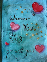 Avec plutôt plus que moins de bonheur ! Je la trouve super ta première double page. Ce fond bleu est tout simplement parfait. Pour mon Art Journal (toujours en rade pour l'instant… priorité au December Daily que j'aimerais finir avant Noël prochain, lol), j'ai pris le parti de ne faire la couverture qu'à la fin, d'une part pour ne pas être gênée pendant la réalisation de l'intérieur, d'autre part pour pouvoir bien refléter le contenu lorsqu'il sera terminé. Merci du partage Laety, grosses bises