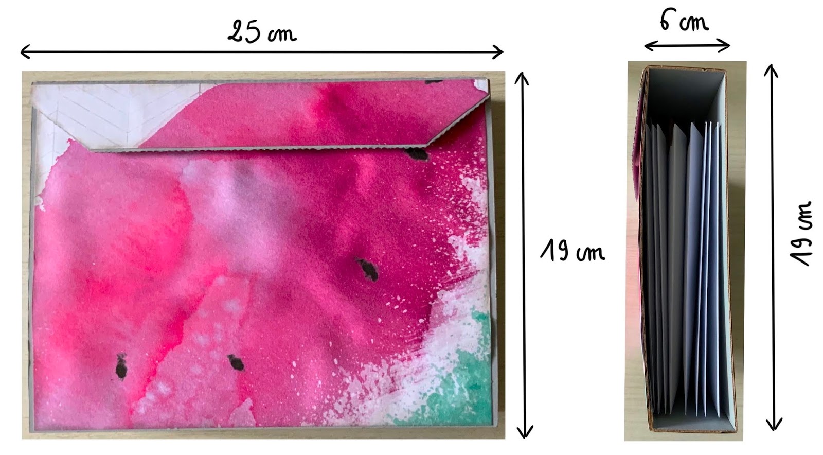 Je garde des tas d’emballages de tailles et formes diverses et en voyant celui utilisé pour cette créa, je l’ai trouvé idéal en terme de dimensions et de configuration des plis existants.